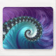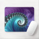 Den här vackra musknappen har en spiral-fraktaldesign i abstrakt i lila- och turkoshaderna. Underbar gåva till älskare, matematik studenter eller lärare.