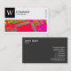 En visitkortsmall med ett långt rektangulärt bild-/fotoområde med ett närliggande foto av skrivmaskiner som kan bytas ut mot en egen bild eller ett eget foto och med en panel i överkanten lämnat för ett monogram eller en logotyp som innehåller "W" som exempel, ett monogram som också kan ändras. Designen balanseras med fyra små rektangulära textbaserade symboler på högerna skapat med symbolteckensnittet Semafor. Det vita området är också en ram-mask som skapar det enkelt att placera och ändra storlek på ett foto under. Företag namn och affärstyp/offert på framsidan med namn och kontaktuppgifter på baksidan i vitt på en kontrasterande mörk grått-bakgrund. Kan anpassas till olika företag och andra användor.