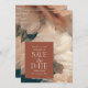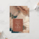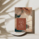 Abstrakt målade ett modernt TeCX-kort för chic bröllop spara datum. Modern på trender serif text och rust terracotta backer.