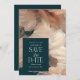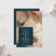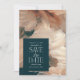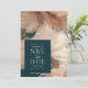 Abstrakten målade upp det moderna tårgräddkortet Terracotta chic bröllop spara datum. Modern på trendserif-text och teal backer.