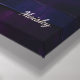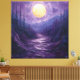 Tillsätt en touch av förtrollning till ditt rum med detta abstrakta månlandskap. Med en glödande gyllene måne som belyser en lugn flod omgiven av höga tallar och robusta berg, blandar konstverket levande lila nyanser med texturerade detaljer. Denna harmoniska komposition är perfekt för moderna, minimalistiska eller naturinspirerade interiörer, och skapar en lugn men djärv mittpunkt för konstelskare som söker unika designs.