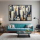 Känn stadens puls i detta dynamiska konstverk. Geometriska former och slående kontraster återskapar den vertikala energin i det urbana livet. Perfekt för moderna utrymmen, är detta verk en hyllning till modern arkitektur och metropolens obevekliga rytm.