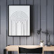 En minimalistisk, modern svart-vit abstrakt konstnärlig linjeframställning av en regnbåge.