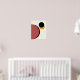 En geometrisk modern konsform i abstrakt av cirklar och halvcirklar i brunt, orange och svart färg på en ljusgräddbakgrund.