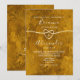 Elegant, boho, modern, abstrakt akvarell guld bröllopsinbjudan med monogram bak, trendig kalligrafi skrift och falskt guld rep hjärta.