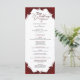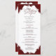 Det här bröllopsprogrammet har en modern minimalistisk design i fetstil och skapar ett förfinat intryck av elegant. På framsidan visningar detaljerna i bröllop på ett tydligt sätt och i snyggt, medan baksidan markerar parets namn i en enkel ramlayout som kan vara personlig. Rikens röda toner förstärker det minimalistiska stil, skapar perfekten för programkort för elegant, formell och contemporary bröllop.