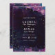 Spara datumkorten med abstraktens lila, blå och svart färgton med guld-punkter och enkel modern text. Dessa mörka chic och unika spara datumen är perfekt för moderna konstmuseer och konstgalleriet bröllop!