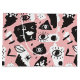 Denna design presenterar ett abstrakt mönster som konstrueras av hand plockadeögon och läppar på en rosa bakgrund.