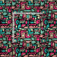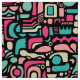 En originalabstrakt utformning som består av många olika former av abstrakt i en palett med fem harmoniskt färg med svart bakgrund. Med den här mönster-designen användor du en vektorgrafikplatta som gör att mönster blir större eller mindre.