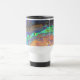 Abstrakten mugg har en ljus mosaik mönster som fångar den unika färgen och mönster i en polerad, abensam snäcka. De pulserande orange-, teal- och lila färgad-plattorna ge i mugg ett nedfläckad-glas ser ut som spiralen i färg runt bildens mittpunkt. Originalfotot C. McGouldrick