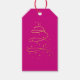Abstrakt mousserande Guld Julgran om Magenta Presentetikett