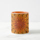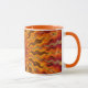 15 uns. Mugg med ett abstrakt foto. Orange handtag och kant.