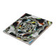 Den här keramiska plattan har en abstrakt, en psykedelisk spiral fraktalkonst i svart och vitt med gult, orange, blått och grönt.