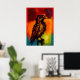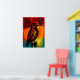 En dramatisk näktergalporträtt formad genom rå expressionistisk markering och strålande färgfält. Den symboliska linjedragningen, glödande paletten och intensiva fågelsilhuetten skapar ett slående stycke modern väggkonst fylld med rörelse, atmosfär och emotionell energi.