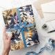 Abstrakt Navy Blåa blommor & Tan Löv Presentpapper