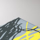 Organiska former som påminner om ett rede i neutraltens gråtoner med en gult.