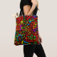 Digital abstrakt-dockdesign i rött, gult, blått, lila, grönt och svart.