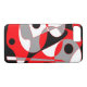 Digital geometrisk abstrakt design i rött, svart, vitt och grått från Ron Trickett