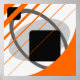 Orange linjer, böjt hörn, grått ovaler, svarta fyrkanter, benvit bakgrund. #abstrakt
