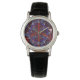 Ansikte i denna designerklocka är ett fredstecken omgivet av en abstrakt som domineras av rött och blått. Det är lite funky och underligt samtidigt. Vänta? Är det möjligt? Ja. Finns även i manar, unisex och stilar.