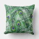 Fetstilfjäder bilder i blått grönt, guld och royal blått överläggs och samlas för att bilda ett intressant mönster på dekorativ kudde. Väldigt attraktivt i en mängd hemmakonstruktioner. Båda sidorna av kudden har samma utformning. Se till att vi ser de samordnande produkterna i vår butik.
