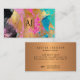 Trendigets moderna abstrakt med glamoröst akrylborst i fet tealturkos, blått, shock rosa, faux guld och svart skapar ett affärskort med elegant med en faux metallisk guld kopparmongrammad geometrisk kvadrat för en smink konstnär | BRÖLLOPSFIXAREN | Värmestylist | Stylist mode | Dekorator för insida | Konstruktör | Arkitekt | Ägare till boutique | Beautiker | bloggare för livsstil | Målare. perfekten för en sofistikerad elegant av snyggten är ett val som du kan göra med ++++++++++++ ++++++++++++++ Enkel att anpassa med ditt företag eller namn initialer / monogram och kontaktuppgifter på båda sidor!
