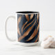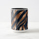 Ta med modern konst till kafferritualen med den här abstraktens penseldrag i marin och koppar. Mörkens toner och det konstnärliga struktur gör det till ett djärvt påstående biet.