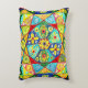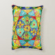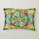 Med brant geometriskt mönster fylls bilden, med cirklar, trianglar och snurrar i ett kalejdoskop av färg inklusive blått, grönt, gult och rött. Den invecklade utformningen skapar en känsla av symmetri och balans.