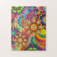 Om du vill ha en utmaning när det gäller pussel, så är den här säkert glad att du blir glad eller blir galen! En psykedelisk abstrakt med mandalas i ljusa gulter, limgrön, elektrisk blått, magenta och orange.