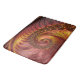 Den här vackra badmattan har en abstrakt spiral-formad utformning i varma eldstrimmor av rött, orange och gult.