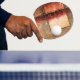 Ethan Harper målade upp det här fantastiska abstraktens röda landskap. Ett rektangulärt indrag skapar en ljusare del av biet. Ett mycket sanguine biet, beställ ditt exemplar i dag!