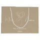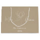 En beige bakgrund och en vit abstrakt, en linjesren. Anpassa och lägg till ditt namn. Text; God jul Perfekt både för presentemballering och som julpars favoritpåse, godiebag.