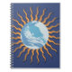 Abstrakt retro stil gult orange sol strålar med en planet i mitten. Välj mellan skischbok, punkt journal, checklista, diagram pappert, recept bok eller linjer på olika bredder och i färg. Välj även en ryggrad färg för att ytterligare anpassa ditt utseende på den bärbara datorn.