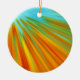 Abstrakt röd gult orange grönt rand på blå julgransprydnad keramik