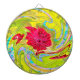 Abstrakt Röd ros om Gult och Aqua Swirl Darttavla