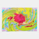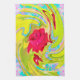 Abstrakt Röd ros om Gult och Aqua Swirl Kökshandduk