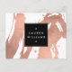 Koordinaterar med det Abstrakta Rosa Guld Penseldrag på Vitt Affärskortsmallen och kontorsmateriel av 1201AM. Denna design har en falsk rosa guld bakgrund med penseldrag och en svart plakett överst för att hålla ditt namn eller företagsnamn. En iögonfallande anpassningsbar postkortdesign för inredningsdesigners, salonger, sminkartister, modbloggare, butiker med mera. Originalkonst och design © 1201AM CREATIVE