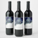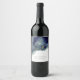 Abstrakt silverblå glitter alkoholbläck vinflaska etikett
