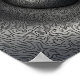 Sammansättningen har en rad snurrande, sammanvävda linjer som skapar en mesmeriserande abstrakt mönster och framkallar djup och fluiditet mot en kontrasterande bakgrund.