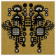 Ett detaljerat original mönster med ett ovanligt och originellt symmetriskt motiv för abstrakten med märkligt mekaniskt och animalistiskt inslag, som också påminner om stamkonst.