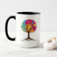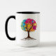 Abstrakt träd med rötter och färgglada blad. mugg