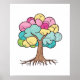 Abstrakt träd med rötter och färgstarka löv. Isolerad på vit bakgrund. Flat stil.