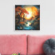 Ett abstrakt med en ström mellan träd och avspeglar solljuset. I skuggor av orange och blått.