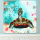 En hand plockade-bild av en sköldpadda med abstraktens bakgrund. Använt färg: rött, blått, teal, grönt, gult, lila.