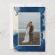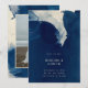 Fira din kärlek med denna unika moderna abstrakta marinblå bröllopsinbjudan, ett samtida val för din bröllopsfest. Denna bröllopspapperation har abstrakta blå och krämvita bläcktvättar och minimalistisk typografi. Anpassa den med ditt valda foto på baksidan.