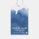 Abstrakt vattenfärgsblått penseldrag färg stänk presentetikett