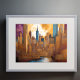 Abstrakt Vattenfärgsfärgning Guld Cityscape 4:3 Poster
