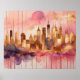 Abstrakt Vattenfärgsmålning Guld Cityscape Rosa Lila Breddförhållandet är 5:4. Det var designat att skriva ut som 20" x 16"