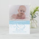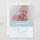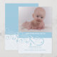 En trendig babypojke, foto, födelseannons. Ljusblå och vita virvlar pryder den nedre halvan av denna moderna design.
