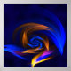Vibrant färg abstrakt-form poster, skapat som en frakttal som ser ut som en vriden energiskaka eller snurra. Den kan också påminna om en abstrakt fantasyblomma med ett spektakulärt korolla eller ge upphov till kosmisk rotation eller okänd galaxi. Kombinationen av färg baseras på skuggor som inte är särskilt vanligt parade, t.ex. elektrisk intensiv blått, orange, gult och en mjuk lila.